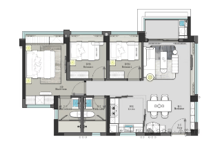 “家政空间解放”也是该户型的一大亮点。项目专门设置了独立家政间,将洗衣、晾晒、收纳等功能集中在一起,避免了家务活动对其他生活空间的干扰,让家居环境更加整洁有序。