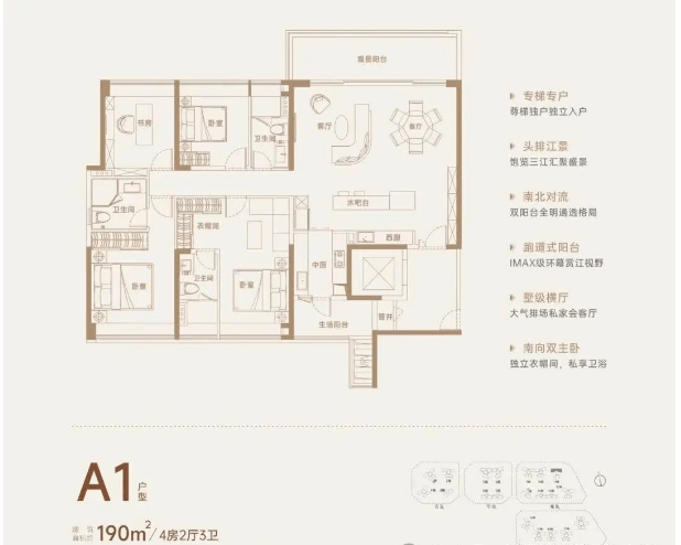 深业颐泽府主力户型涵盖103㎡、108㎡、128㎡、142㎡、143㎡、190㎡及257㎡,近期加推5、6栋大平层产品,精准覆盖刚需改善到高端改善客群。所有楼栋采用低梯户比设计——包括2梯2户、3梯3户、3梯4户,有效减少候梯时间,提升归家私密性与舒适度。以103㎡三房为例,做到南北通透、全明格局,主卧带飘窗,得房率优势明显;190㎡以上大平层则配备LDK一体化、双主卧套房、超大阳台等高端配置,部分单位可一线望江,视野无遮挡。值得一提的是,项目层高3米,配合精装交付,为后期软装留足发挥空间。户型设计不盲目追求“奇大”,而是在功能分区、动线逻辑、采光通风上做足功课,真正回归居住本质。