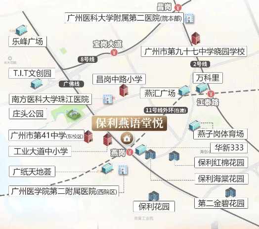 纯地铁上盖🚇 距离燕岗地铁站不到二百米,是广佛线与 11 号线交汇点,8 站直达琶洲,换乘 3 号线 7 站到珠城。紧邻工业大道主干道,交通路网发达,家门口纸厂公交站,周边 500m 内 28 条公交线路,13 处公交站点,畅达全城🚗