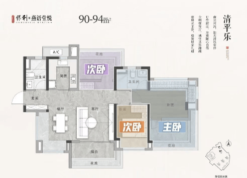 户型多样,90 - 94 平横厅三房两卫、92 平三房两卫、107 - 112 平四房两卫、125 平四房两卫~