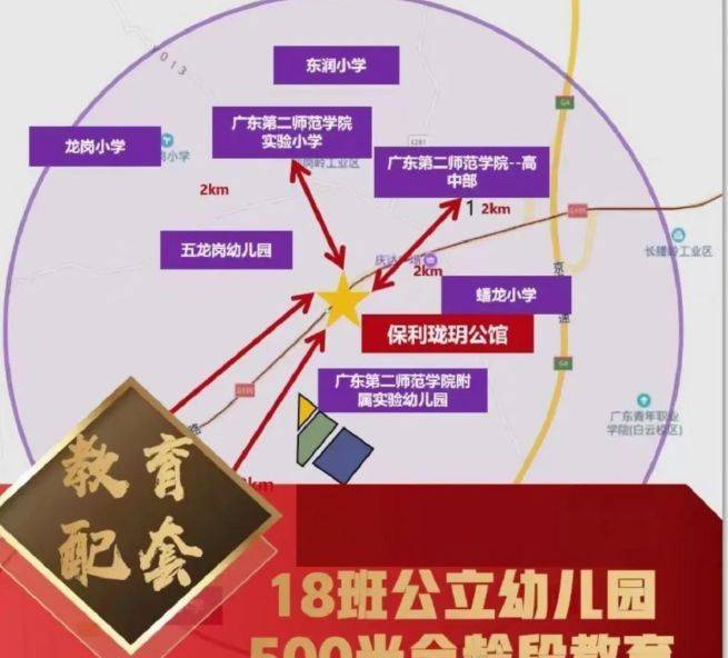 教育配套较为完善。项目配建 18 班广二师幼儿园,现已开学,方便孩子入园。周边 3 公里内覆盖从幼儿园到大学全龄段教育,有钟落潭小学(区一级)、蟠龙小学(区一级)、广州八十一中学(市一级)、广州大同中学 (国家级示范性高中) 。项目对面越秀配建的金广附名校 2025 年投入使用,为孩子提供更优质教育资源,家长可以实现目送式教育,对孩子教育更放心。