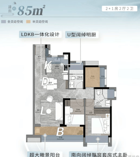 越秀·天悦云湖提供了从约84㎡到119㎡不等的多种户型选择,包括三房至四房的设计。特别是其三期产品,采用了全南向设计,使用率超100%,部分户型甚至达到了107%。这种高效利用空间的设计,在保证舒适度的同时,也极大地提升了居住体验。