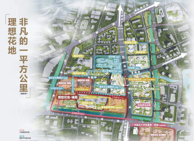 该项目被定位为“一平方公里连片开发”的微缩城市,旨在通过集结各类核心配套设施,实现高品质生活。该区域不仅有丰富的商业资源,还规划有多个大型商业综合体、办公集群以及丰富的公共休闲设施,如约4.5万平方米滨水公园等。