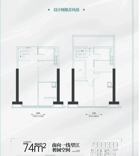 - 74㎡南向一线望江LOFT:终极改善之选,南向一线江景无遮挡,可明火设计让生活更具烟火气。大面宽客厅搭配全景落地窗,将江景引入室内,无论是日常居住还是朋友聚会,都能享受绝佳的视野和体验。
