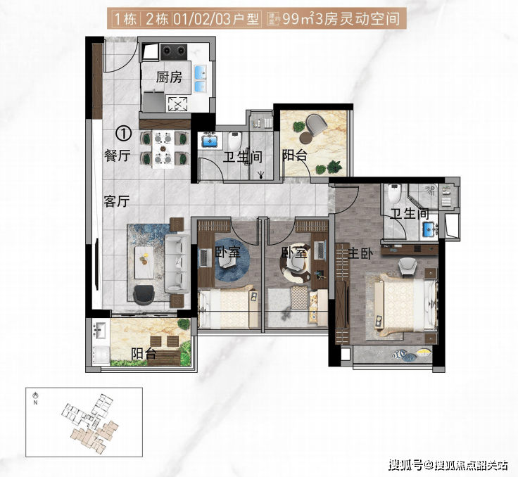 越秀星耀TOD共有四种业态分布:一栋写字楼、两栋商办公寓、四栋住宅和约2000平方米的商业。住宅部分仅有550套房源,分布在1-4栋,分别为32层和31层。户型设计合理,主要提供99平方米的三室两厅两卫和125平方米的四室两厅两卫两种选择。所有户型均朝南,保证充足的采光和通风。公寓部分则有1857套房源,主流面积为36平方米、52平方米和65平方米,部分户型还带有阳台,适合不同需求的家庭和个人。