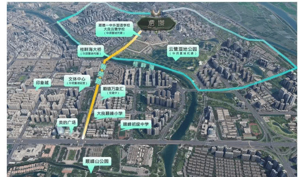 顺德澐璟地理位置优越,位于顺德3.0版中心城区核心区域,周边配套设施完善。驹荣北路站地铁站步行可达,通过地铁网络30分钟内可直达广州南站;桂畔海大桥(建设中)将大良东区与云鹭片区紧密相连,使得从项目出发到顺德悦府仅需1公里,至顺峰山公园也只需5分钟车程。此外,周边还有华侨中学、京师励耘实验学校等名校环绕,为居民提供了便利的生活条件。
