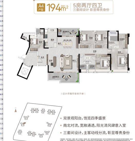 项目五、六期楼栋采用科学布局,南北楼间距达约140米,东西向约145米,最大限度保障采光、通风与视野通透性。园林设计以“两轴、三环、四大剧场、六大花园”为骨架,打造约5.2万平方米的“公园里”组团,内设阳光草坪、蔚蓝泳池、全龄游乐区、花语会客厅等功能空间,满足全年龄段业主的户外活动需求。