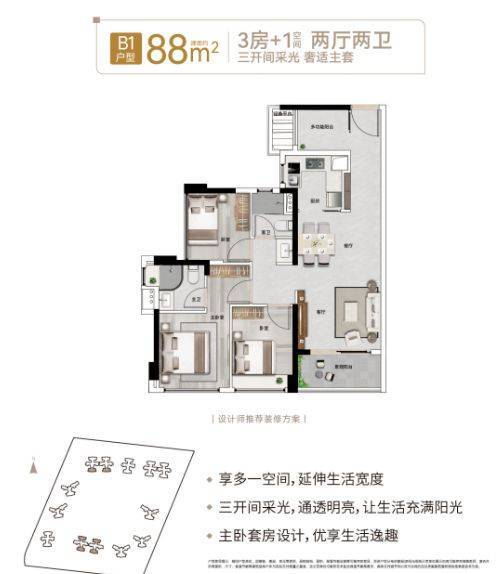尽管部分户型设计沿用早期理念,但其核心优势在于高实用性与高空间效率。以88㎡四房为例,在同等面积下实现四房两厅两卫布局,远超市场同级产品普遍的三房配置。户型结构方正,动静分区明确,飘窗设计合理,可改造性强,无过多承重结构限制,便于后期个性化装修。