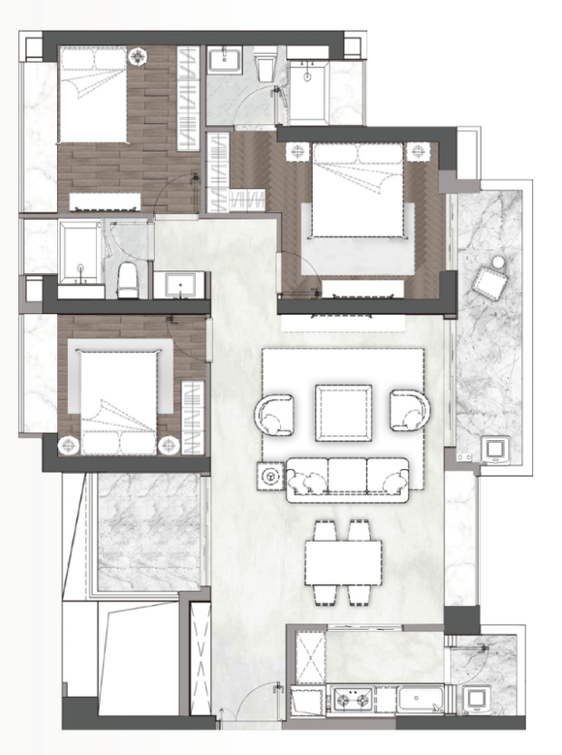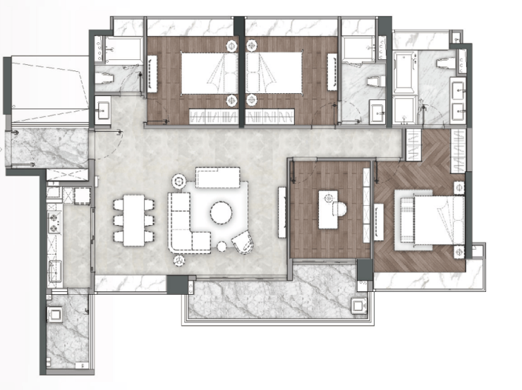 A5--03:建筑面积约190㎡四房两厅三卫