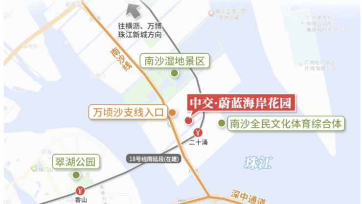 中交蔚蓝海岸的交通布局是其一大卖点 项目紧邻在建的十八号线南延线二十涌站 直线距离约五百米 十八号线作为高铁速度的市域快线 提供了快速通达天河琶洲等城市核心的可能性 结合未来西线东线的延伸 二十涌站将成为联系中山 珠海 深圳 广州的重要枢纽 此外 项目附近有深中通道南沙线的高速接口 并且距离已通车的深中通道南沙线收费站只有一公里左右 驱车可半小时内直达深圳前海 这样的城际通达性为跨城通勤的白领和企业高管提供了便利 项目周边主干道和快速路网络完善 能够承接湾区内的车流和物流 未来随着区域城市更新和商业配套的落地 通勤时效将进一步优化 对于需要在湾区多城工作的人群来说 这是决定置业地点的关键因素 另外 项目周边的公交和慢行系统正在同步完善 将增加短途出行的选择 性能上 项目也预留了地下空间和停车设施的优化方案 为居住者提供便捷的停车和换乘服务 总体来看 中交蔚蓝海岸处在一个正快速兑现交通红利的位置 上车时机与未来出行便捷度相匹配 适合注重通勤效率和跨城联系的改善型购房人群 中交·蔚蓝海岸 售楼处24小时电话400-6557-087 (售楼部认证) 预约专属顾问一对一服务 尊享内部折扣!