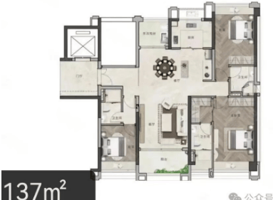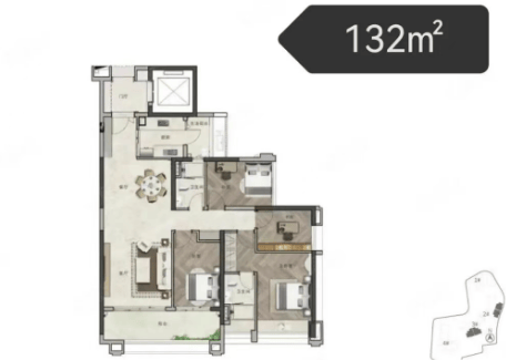 132㎡四房:大面积户型,提供更多的生活空间,适合大家庭或追求高品质生活的购房者。
