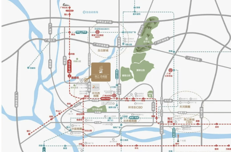 1站至西村站换乘地铁5号线,3站直达陈家祠(历史文化地标),6站直达珠江新城(CBD核心区)。