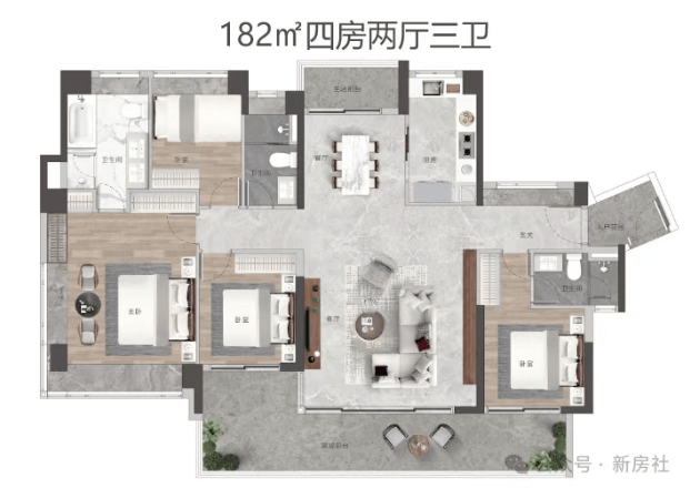 在“房住不炒”和“新规时代”的背景下,高新·仕林苑的产品设计可以说是对市场痛点的一次精准打击。目前项目在售的户型涵盖约99至213平方米(主力为99-182平方米的新规现楼),这些户型不仅仅是面积的堆砌,更是空间利用率的极致展现。