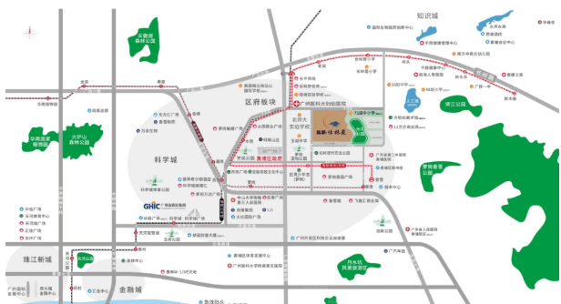 广州绕城高速、香雪大道、广汕公路、开创大道、开萝大道等主干道环绕周边,自驾出行四通八达。无论是前往科学城核心区办公,还是去往黄埔区府办事,亦或是驱车前往天河CBD,都能在短时间内到达。对于拥有私家车的家庭来说,这里的交通效率丝毫不逊色于市中心。