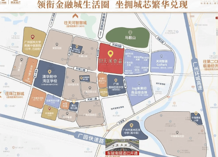 休闲与医疗配套优质,打造健康宜居生活。休闲方面,项目构建6大生活剧场、三环五园沉浸式园林,园内配备双泳池设计(成人池+儿童池),业主下楼即可畅游;紧邻的马鞍山未来将规划为83万㎡天河智谷人才公园(广州首个人才主题公园),面积超天河公园,规划建设广场、运动场地、水景景观等,预计总投资2.45亿,现已进入招标阶段,未来将成为业主休闲漫步的天然氧吧;3公里内还有天河公园、奥体中心、火炉山森林公园等生态资源,鲜氧生活触手可及。医疗方面,周边500米内就有已启用的甲级医院广州医科大学附属中医医院天河院区,还有广州复大肿瘤医院、暨南大学附属第一医院等优质医疗机构,为家人健康保驾护航。