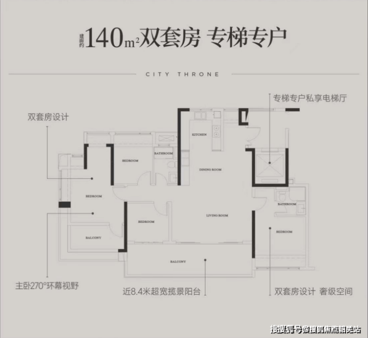 适合三口之家或二胎家庭。全明格局、动静分区清晰,主卧带独立卫浴,次卧均可开窗采光。虽为入门级改善户型,但尺度感丝毫不输市面上140㎡产品。