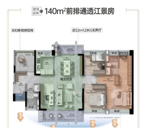 突出的产品力:户型设计注重高使用率与舒适度,所有户型南北通透,配备宽敞阳台,LDKG一体化设计提升空间实用性。