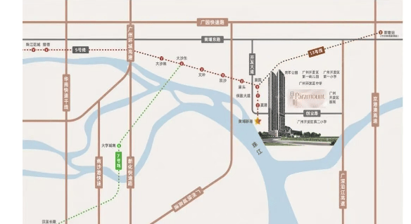 交通方面,新福港鼎峰江畔紧邻地铁5号线黄埔新港站,步行约需12分钟即可到达。作为五号线始发站,早高峰时段通勤者更容易找到座位,提升了日常出行的便利性。此外,周边多条城市主干道和高速公路的存在也使得自驾出行十分方便。