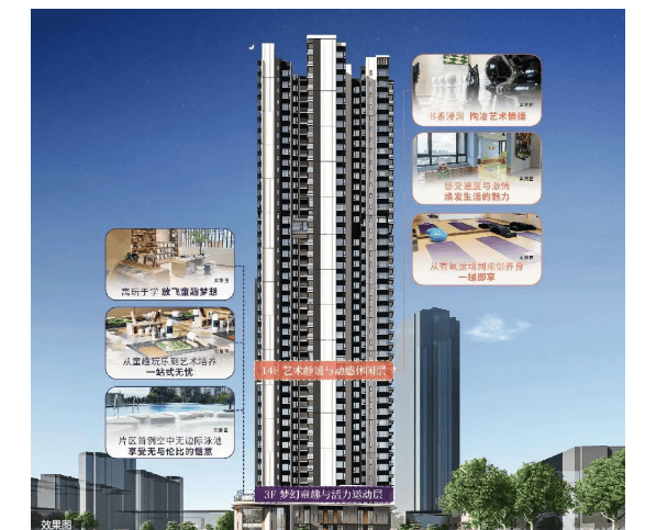 生活配套设施齐全,尽管项目体量较小,但开发商精心设计了双架空层,包括空中泳池、艺术书吧、童话乐园等功能区,丰富了居民的休闲活动空间。同时,周边成熟的小吃店、超市以及医院等也保障了日常生活的基本需求。
