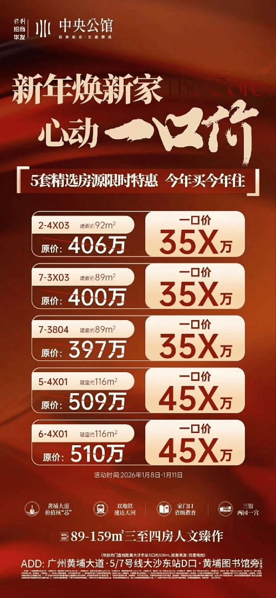 📍 售楼处地址:广州市黄埔区大沙北路 301 号保利招商华发中央公馆营销中心