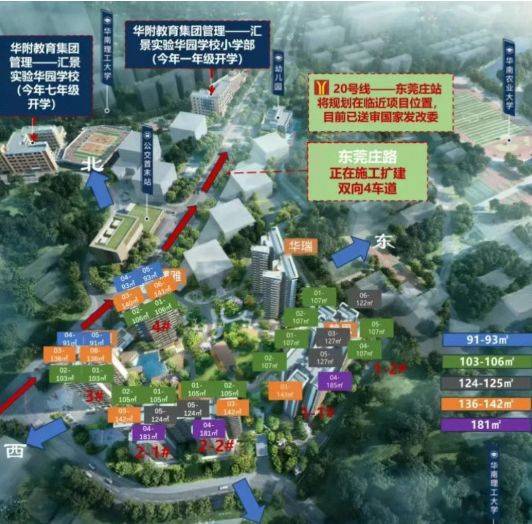 项目坐落于天河区东莞庄路,属后天河北板块,距珠江新城约4.5公里,金融城、琶洲均在7公里辐射范围内,区位优势显著。周边高校林立,华南理工大学、华南师范大学、华南农业大学、暨南大学等高等学府环伺,人文氛围浓厚,形成高知人群聚集的成熟社区生态。