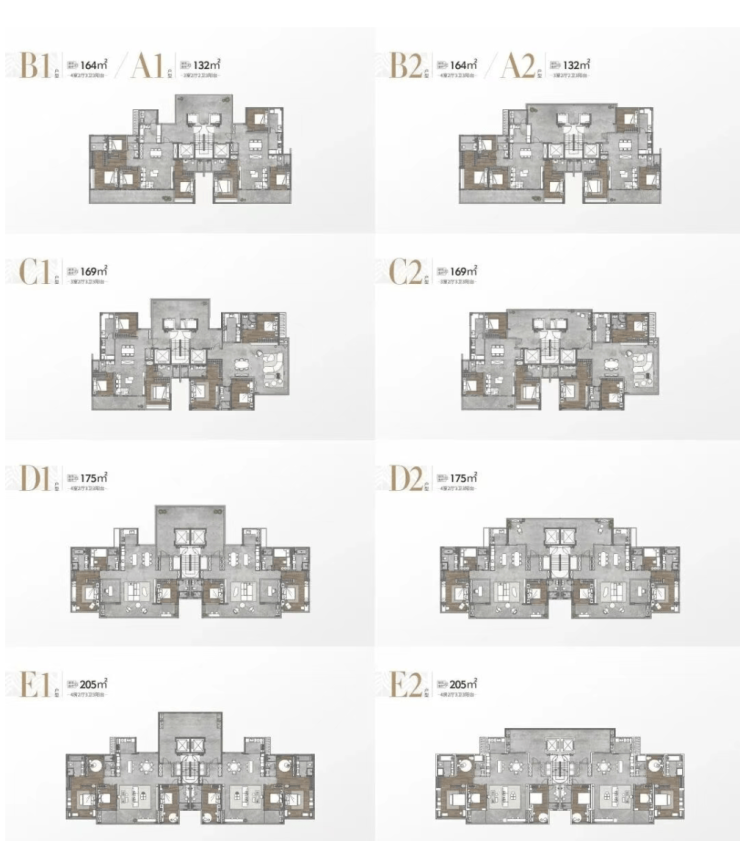 项目首推78-125㎡滨海精装户型,得房率高达85%(远超区域平均78%)。以95㎡四房为例: