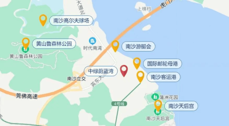 教育资源: 项目周边教育资源丰富,分布有广州市湾区实验学校(约1.2公里,步行15分钟)、南沙小学(时代南湾校区,约2公里,车程6分钟),具体入学政策以教育局当年划片为准。