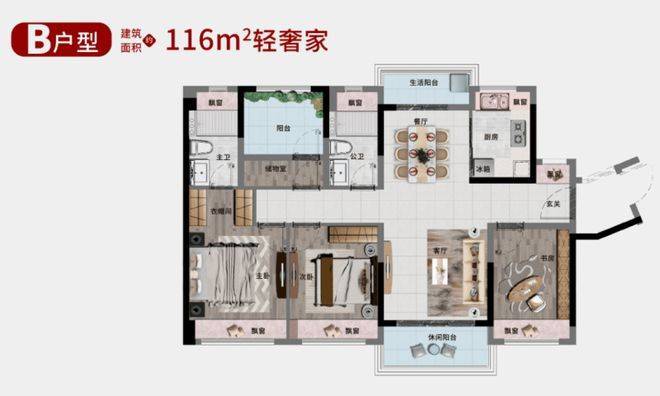 在居住产品打造方面,季华正荣府以实用性与舒适度为核心导向。社区整体采用两梯四户的板式布局,居住密度适中,公共空间使用效率高。所有住宅均为南向或南北通透设计,充分引入自然采光与通风条件,契合岭南地区居住需求。主推建面约93平方米三房户型,功能布局紧凑合理,玄关、厨房、客厅与卧室分区清晰,空间利用率高,能够从容满足年轻家庭及首次改善家庭的日常起居需求。建面约135平方米四房户型则进一步拓展生活尺度,南北对流格局搭配双阳台设计,餐客厅一体化空间开阔大气,适合多成员家庭长期居住。