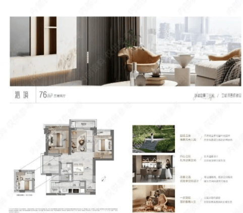 76–108㎡“超新规”三至四房:得房率高,功能紧凑无浪费。如78㎡三房可望江园双景,98㎡做到四房双卫,满足首置与首改需求;