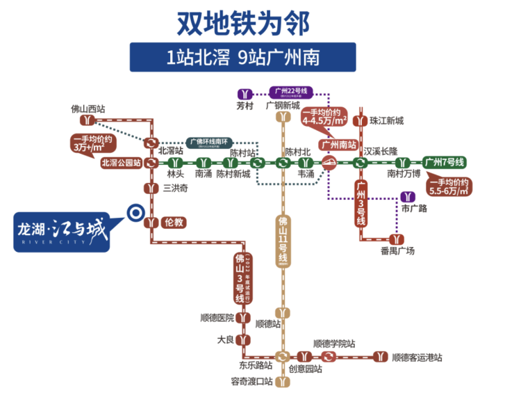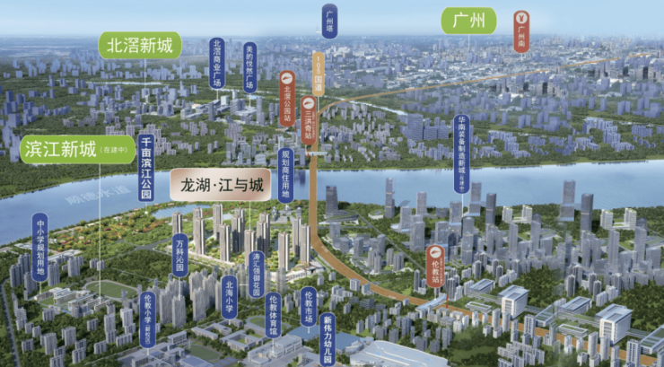龙湖江与城交通便利,距离佛山地铁3号线伦教站约900米,步行可达,同时一站可达北滘,二站可换乘7号线,九站直通广州南站,形成广佛半小时通勤圈。社区临近105国道,快速接入周边主要城市干道和高速路网,自驾出行便利。项目交通规划科学,无论是通勤、购物还是休闲出行均可高效完成,减少居民日常出行时间,提高生活效率。得益于交通优势,楼盘对于佛山及广佛交界区域工作的人群、追求便捷生活的年轻家庭具有较强吸引力,同时也为长期资产增值提供潜在支撑。周边公共交通与自驾出行的结合,使龙湖江与城成为兼顾通勤和生活便利的理想居住选择。