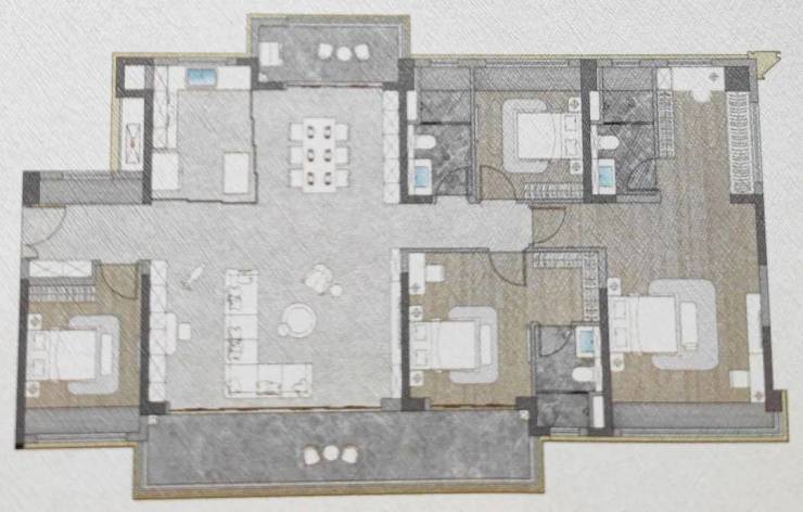 189㎡双套房:转角玄关设计,主卧配备270度大飘窗,景观视野极佳。