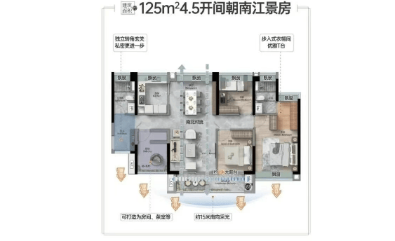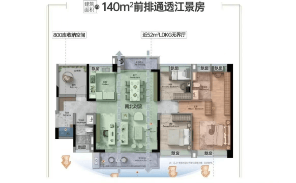 尽管项目规模不大,但越秀地产在公共空间营造上毫不妥协。社区绿化率达25%,结合滨江景观带形成内外双景融合的生态格局。业主下楼60米即达珠江出海口,享有约223米无遮挡一线南向江景视野,90%以上户型可望江,真正实现“推窗见水”。同时,项目配备高规格会所(具体功能以交付为准),结合LDKG一体化户型设计与6米以上景观阳台,将室内生活延伸至自然之中。无论是晨间瑜伽、傍晚亲子时光,还是周末朋友聚会,都能在江风与绿意中找到理想场景。这种“小而精”的社区模式,特别适合追求生活质感而非大盘热闹的改善型家庭。