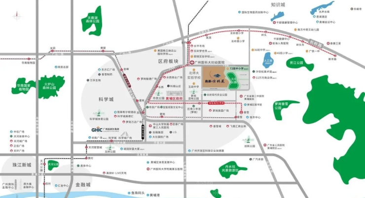 高新仕林苑坐落于广州黄埔区长岭居核心区域,具体位置为萝岭路以东、长贤路以南,紧挨长岭雅居旁边,属于长岭居板块的成熟居住片区,周边社区氛围浓厚,生态环境优越。作为黄埔重点发展的人居板块,长岭居凭借低密属性、生态资源,成为广州主城边缘难得的纯居住板块,而项目所处位置更是汇聚了板块内的核心交通资源。