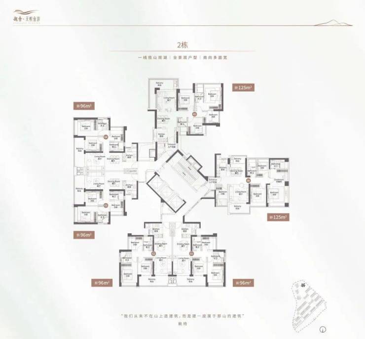 超高层:96㎡三房、125-141㎡四房,景观视野开阔,俯瞰浔峰山生态公园;