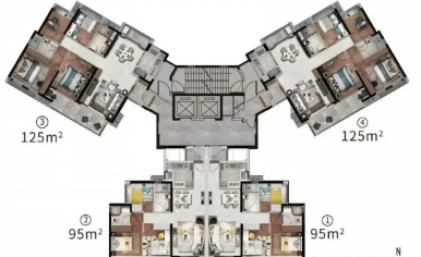 项目主力产品为95㎡与125㎡两种三房两卫户型,均为新规设计,布局方正,动线合理。尽管官方标注使用率为78%,在当前限高限容政策下已属较高水平。所有楼栋均为2梯4户设计,层高3米,居住舒适度优于同价位竞品。作为现房销售项目,购房者可实地验房,直观感受空间尺度、装修品质及社区实景,规避期房交付不确定性风险。