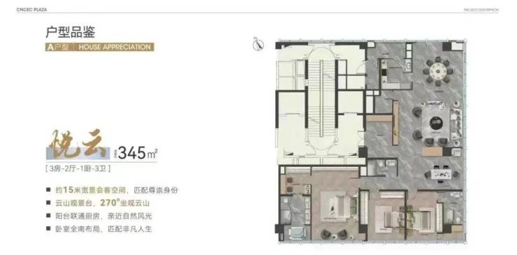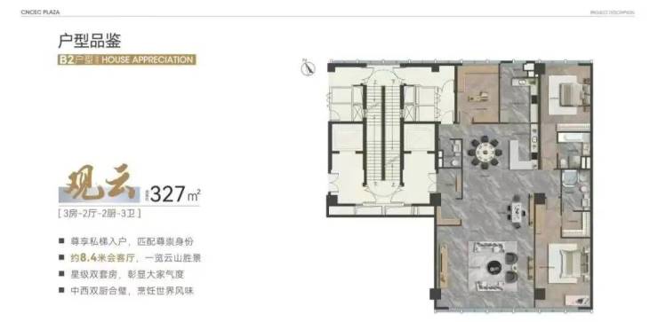 南塔6-14F为大平层公寓,户型涵盖321-653㎡行政山邸,仅此32席头排一线白云山景大平层(带明火功能)。