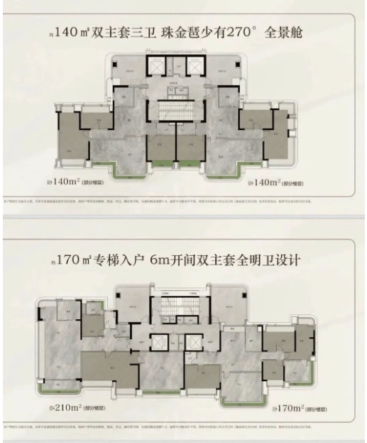 户型设计:建面约120-210平方米的云幕平层,提供多种选择以适应不同家庭的需求。