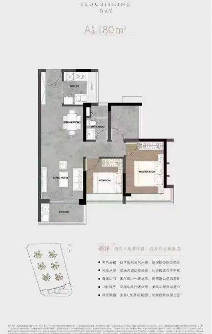 :项目沿江而建,南侧直面珠江口阔景,北侧享滨水景观长廊,拥有海湾风情花园、中央泳池、儿童乐园等休闲设施,营造滨海微度假生活。