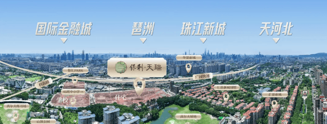 保利天瑞项目位于广州市天河区五山汇景新城板块内,处于珠江新城和琶洲金融城两大核心区域之间的黄金地段。项目背后依托汇景20年成熟的生活圈层配套,享有得天独厚的地理优势。由于其优越的地理位置,能够吸引来自珠江新城、琶洲以及金融城的高净值人群,同时也吸引了汇景新城的置换需求,形成了一个具有较高购买力的居住社区。