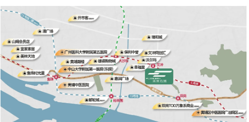 商业与医疗配套方面,项目依托大盘自身规划与周边成熟资源形成完善体系。自身规划约58万㎡商办业态,将打造游逛式商街;1公里可达31万㎡华润万象系商业(含12万㎡购物中心,在建中)、沃尔玛、万科里mall等成熟商业;5公里范围内涵盖山姆会员店、宜家、盒马等品质商业,可满足不同层级消费需求。医疗资源上,约2公里内有中山大学附属第一医院、广州医科大学附属第五医院(东院区)两大三甲医院,为家人健康提供坚实保障。