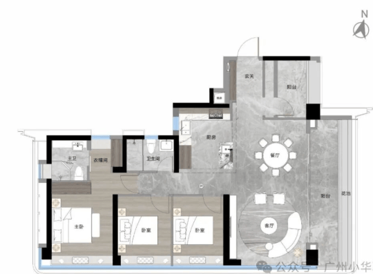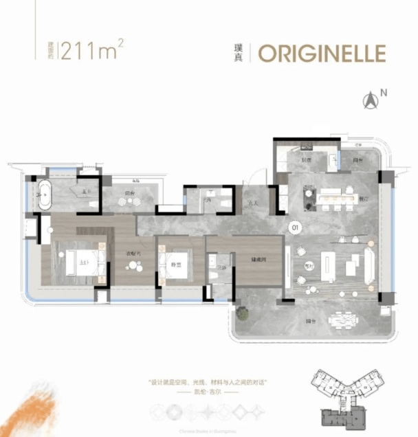 约211平方米的新派豪宅,五开间纯南向设计。