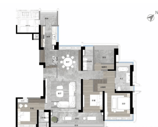 约220平方米奢配大平层,拥有约8.5米阳台和主卧L型大飘窗。