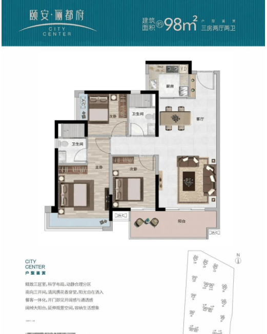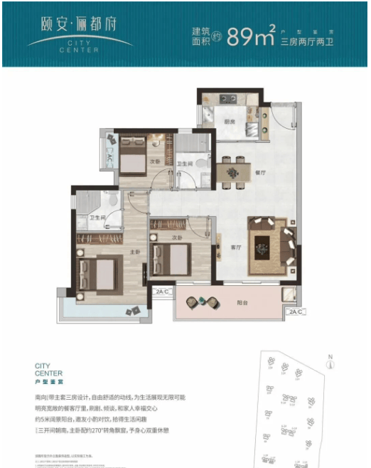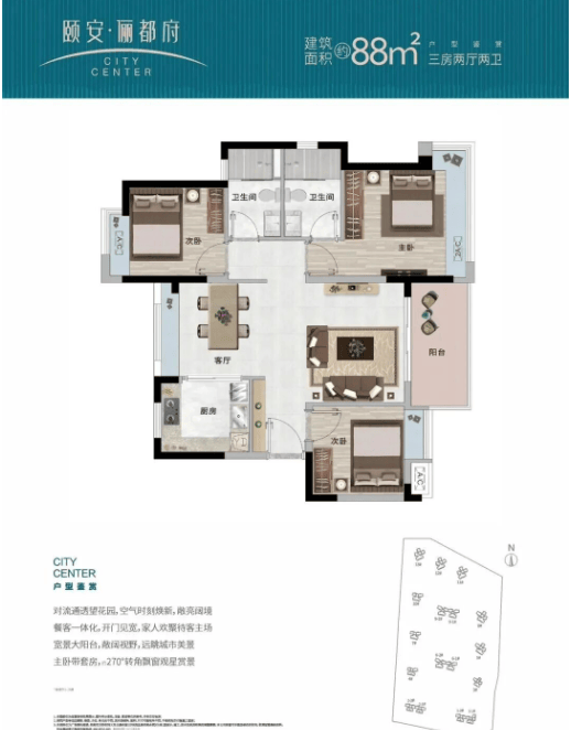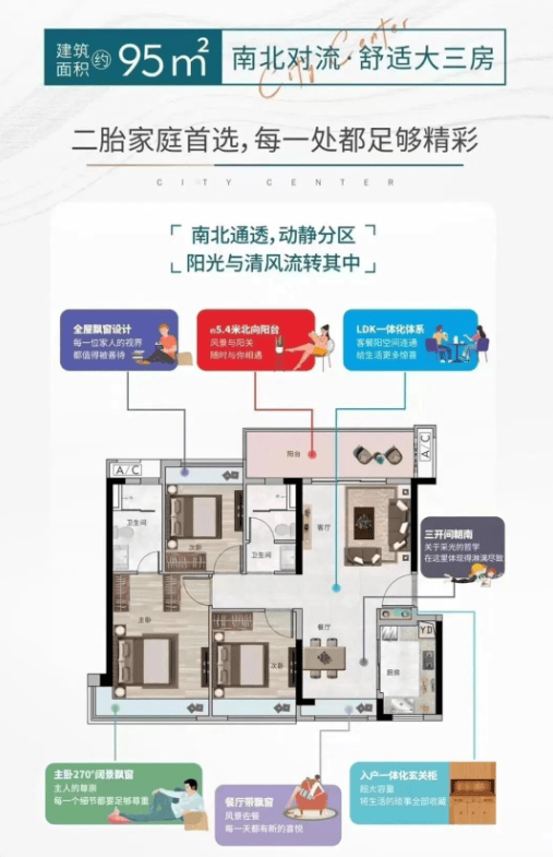 88–99㎡三房:紧凑实用,适合年轻夫妻或三口之家,部分带270°转角飘窗,采光优秀;