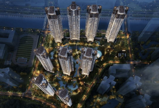 项目总建筑面积约236万平方米,容积率4.37,绿化率35%,规划了9栋45-47层的超高层住宅,总户数约1167户,车位比高达1:2.15,充分满足高端家庭的停车需求。这种“高容积率 + 高绿化 + 高车位比”的规划理念,旨在打造一个垂直森林式的生态社区。项目充分利用香雪公园的自然地势,采用台地式园林设计,内部打造近10000㎡的三重水系,“水木亭桥”的景观与外部山体呼应,形成自然衔接的生活场景。每一寸土地的利用,都经过了精密的日照分析、风环境模拟及景观视线推演,确保所有户型均能享受到最佳的采光与通风,同时最大化公园与园林的观赏价值。目前项目已是准现楼状态,预计2025年底前交付入住,所见即所得的实景彻底消除了期房交付的不确定性。