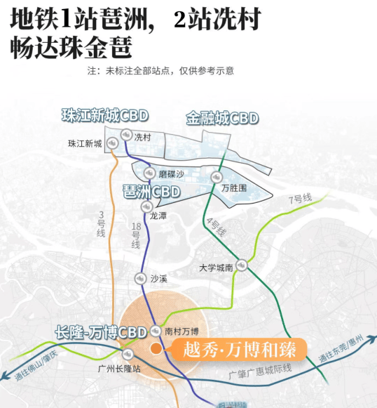 首发 CBD 组团 F1 - 2 地块位于锦绣香江别墅群中间,与万博商务区直线距离约 600 米,步行至南村万博 E1 口约 1.3 公里,可骑行接驳。南村万博是 7 号线与 18 号线交汇站,可一站直达广州南站、老黄埔、科学城、琶洲、珠江新城等地🚇