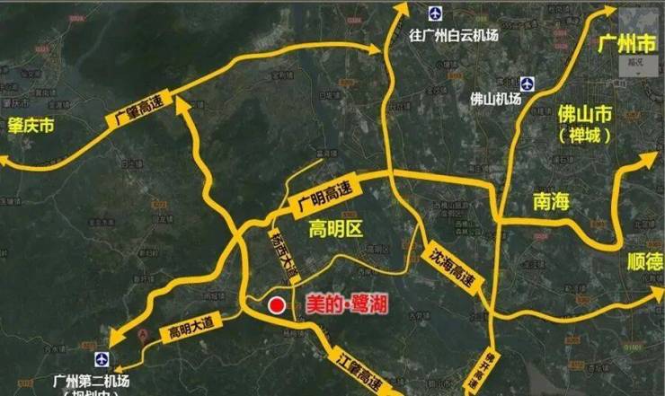 珠三角新干线(广州新)机场是全国仅有的17座4F级国际机场之一,该机场将落户高明,建设与完善“四线三站”高速客运铁路,新增3条高铁开进高明,佛山地铁2号线二期将接驳高明站。