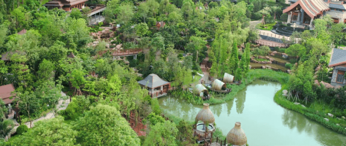 鹭湖半山汤谷——位于海拔804.5米的皂幕山脉下,养颜更养生;森林公园优美的高氧自然环境,古朴典雅的泰国特色建筑设计,多达46个泡池