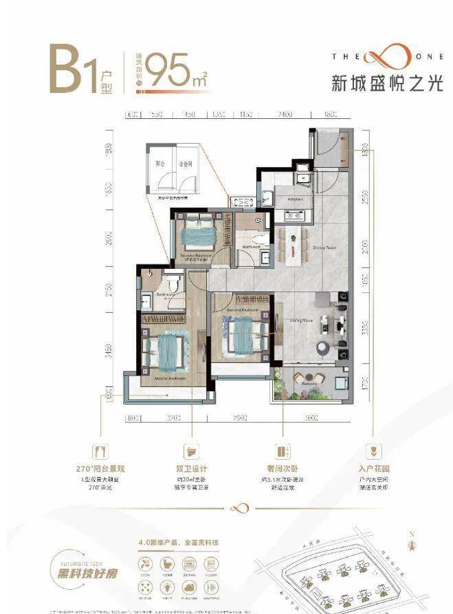 项目提供 85 - 95㎡三房两厅两卫以及 115㎡四房两厅两卫的户型选择,共 1188 套房源。这样的户型设计,充分考虑了不同家庭结构的需求,无论是新婚夫妻的首套房,还是二孩家庭的改善型住房,都能在这里找到合适的空间。
