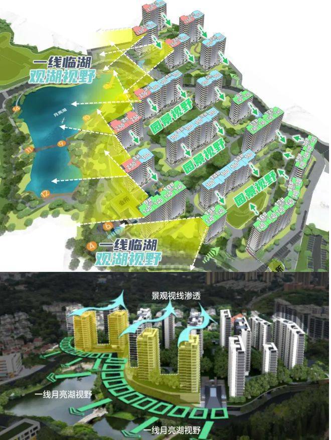 如果说产业决定板块的价值基底,那么无可复制的生态资源则定义了其价值巅峰。越秀观樾最令人心动的天赋,在于其被约5.3万平方米的“日月双湖”(太阳湖、月亮湖)及约243万平方米山体林地所环抱的绝版生态。经过越秀的统一生态修复与改造,长达约1.9公里的湖岸线将成为业主的私家风景廊道。其中,约3.3万平方米的太阳湖更是直接与社区为邻。在高层林立的广州中心区,能拥有如此规模的原生湖泊资源,且能被低密度社区私享,堪称“绝版”。项目整体容积率仅约1.91,绿化率高达约35%,建筑以45-52米的低密小高层为主,采用“前低后高、环湖向阳”的布局,最大化将湖光山色引入每一户的窗前。这不是对自然的简单占有,而是让家生长在自然里,让湖居从少数人的特权,变成社区日常的生活底色。