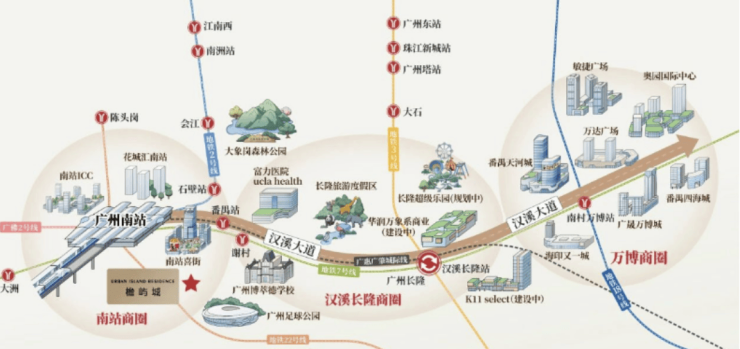 万科·檐屿城位于广州南站中轴区,是南站万博CBD的重要组成部分。项目依托广州南站枢纽功能,兼顾交通、商业和城市产业核心价值,形成独特的大城格局。周边集聚三雄极光总部、李锦记华南总部等知名企业,配套多家精品酒店和城市公寓,营造出成熟的城市面貌和大城感。作为新规产品,檐屿城在空间布局和功能设计上兼顾实用性和舒适度,为业主提供未来可持续发展的生活基础。